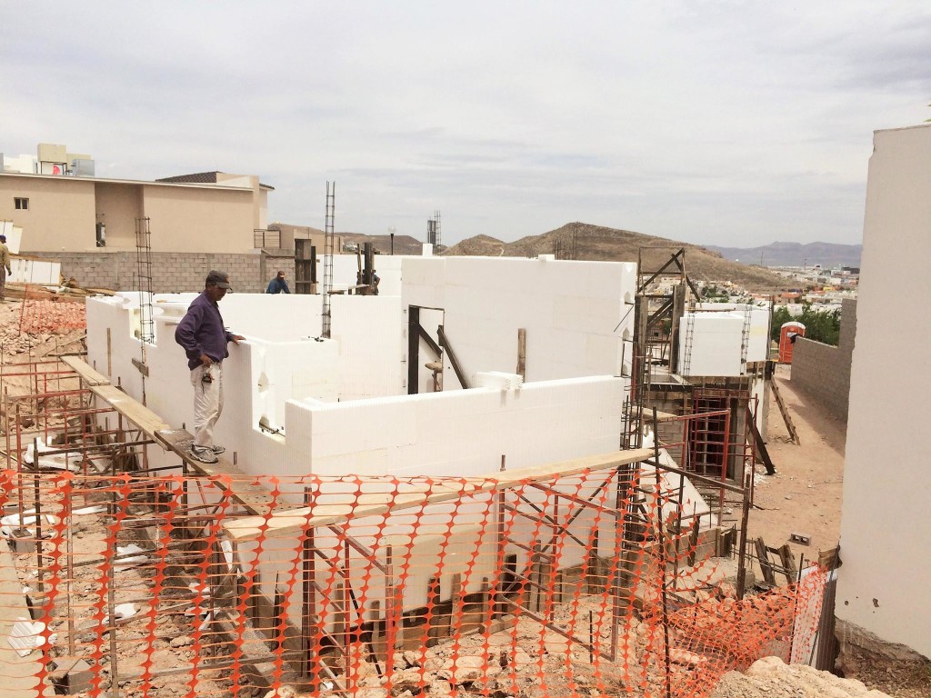 tial project in the city of Chihuahua, located northwest of Monterrey, Mexico. They joined BuildBlock Distributor ICF México who is in charge of the project. The large three story home is being built using the GlobalBlock ICF for interior and exterior walls.