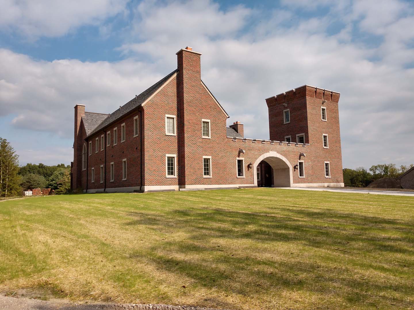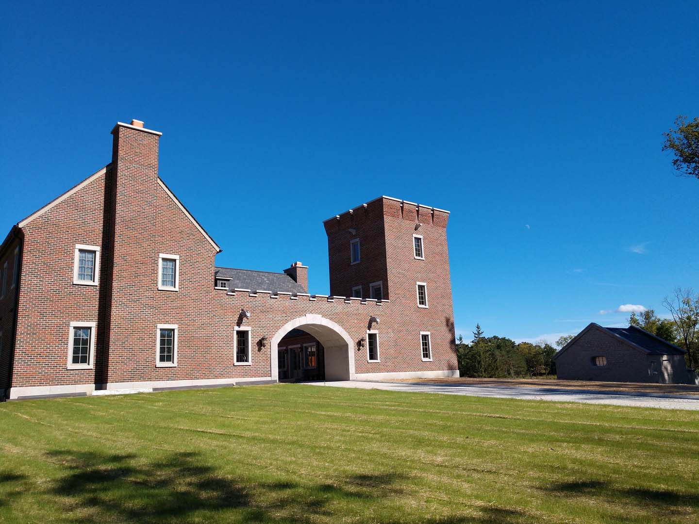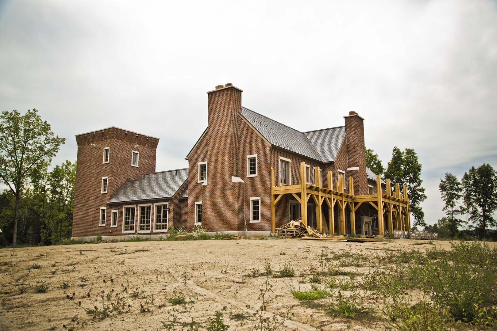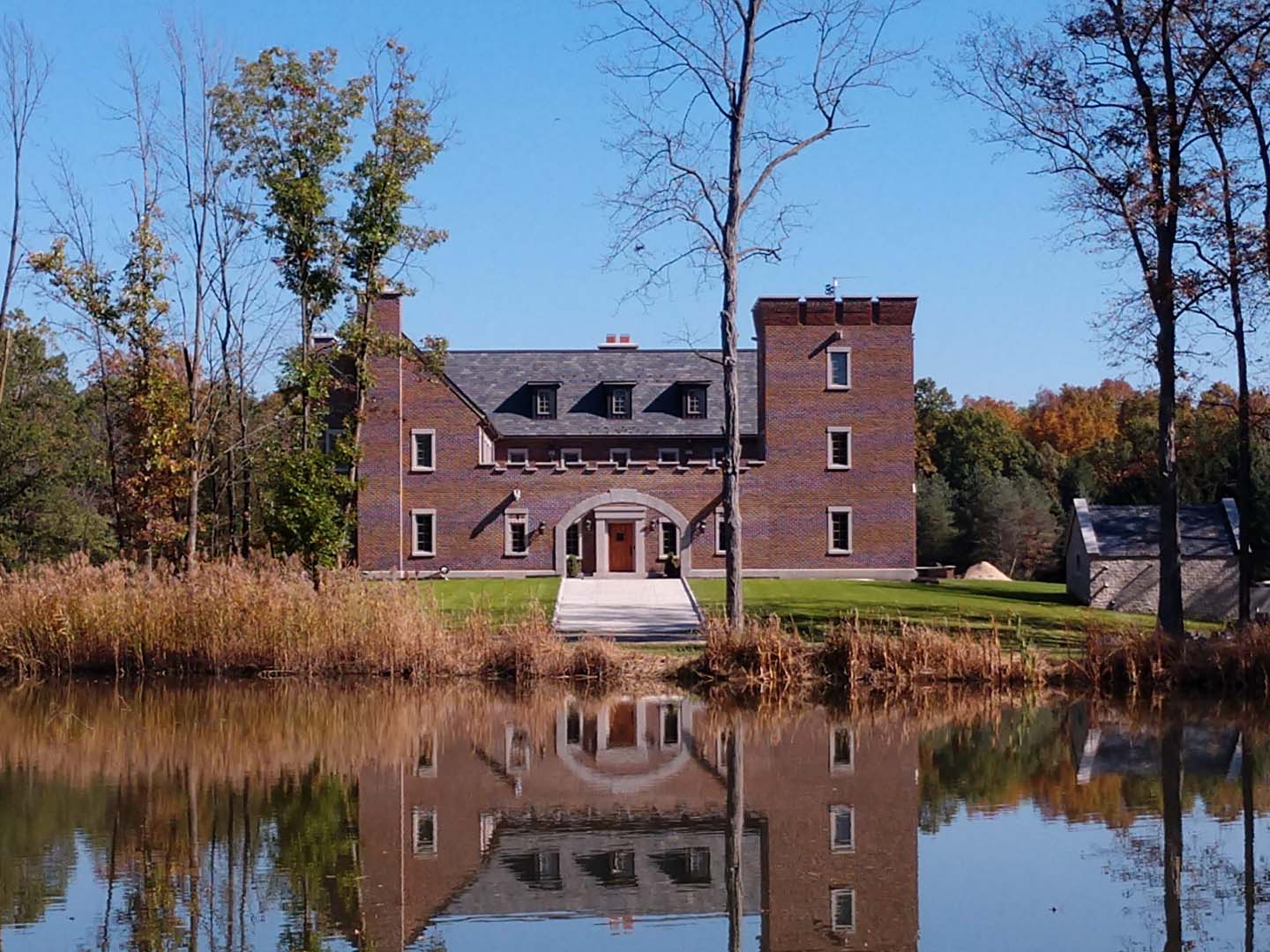 “There were numerous challenges with the site,” says Drew. “The water table is only 16-inches below the surface and we knew we wanted a full basement. So we had to build the house at grade and fill around the house to bring it up. We found all of the fill material on site and didn’t stop digging ponds until we had enough.” In the end, they dug three large ponds on the property creating a beautiful setting for the home. A scenic road protected by a fierce gate, worthy of the “castle under construction inside” marks the nondescript entrance to the Drew Castle.