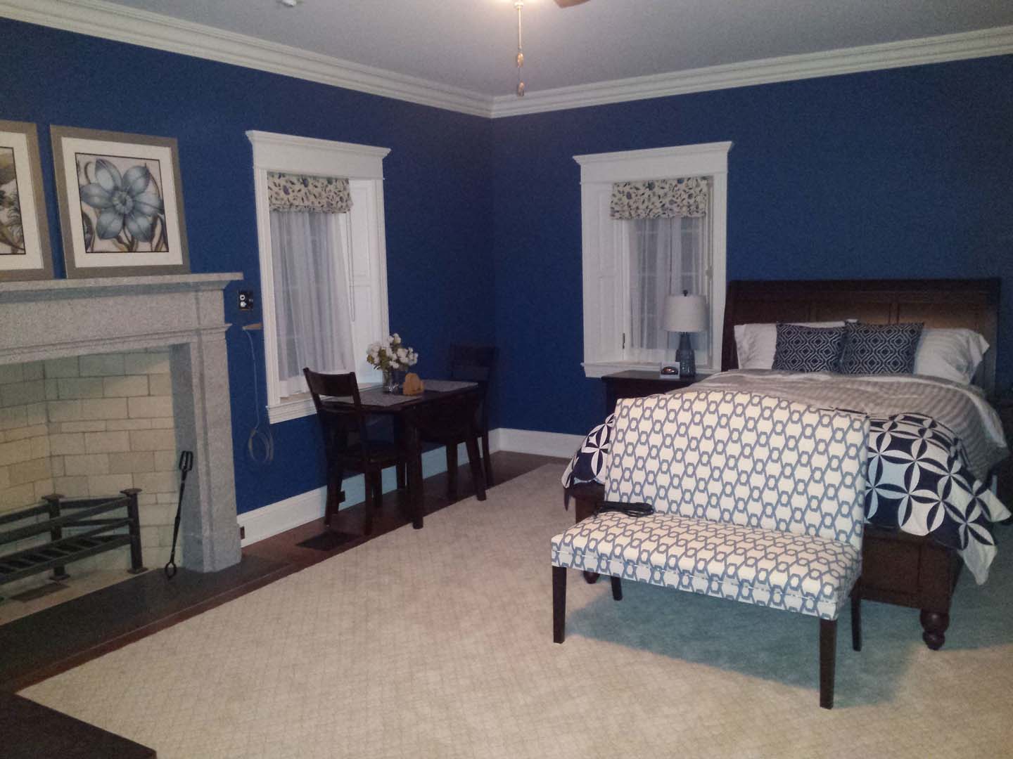 Walk in closets lead into each luxurious bathroom which features custom granite shower bases, sinks and matching bath tub designs. At the end of the short hallway, french doors open into the master bedroom itself. Through the bedroom is another set of pocket doors that open into the master bedroom sitting room. The sitting room features another beautiful fireplace with large windows and another small kitchenette. The homeowners think they’ll spend more of their time upstairs when not entertaining friends and family.