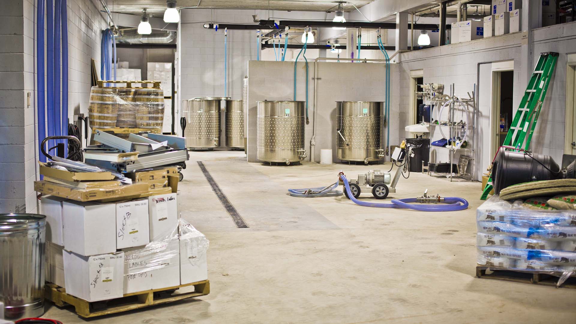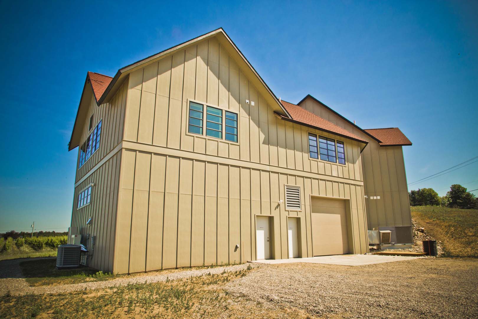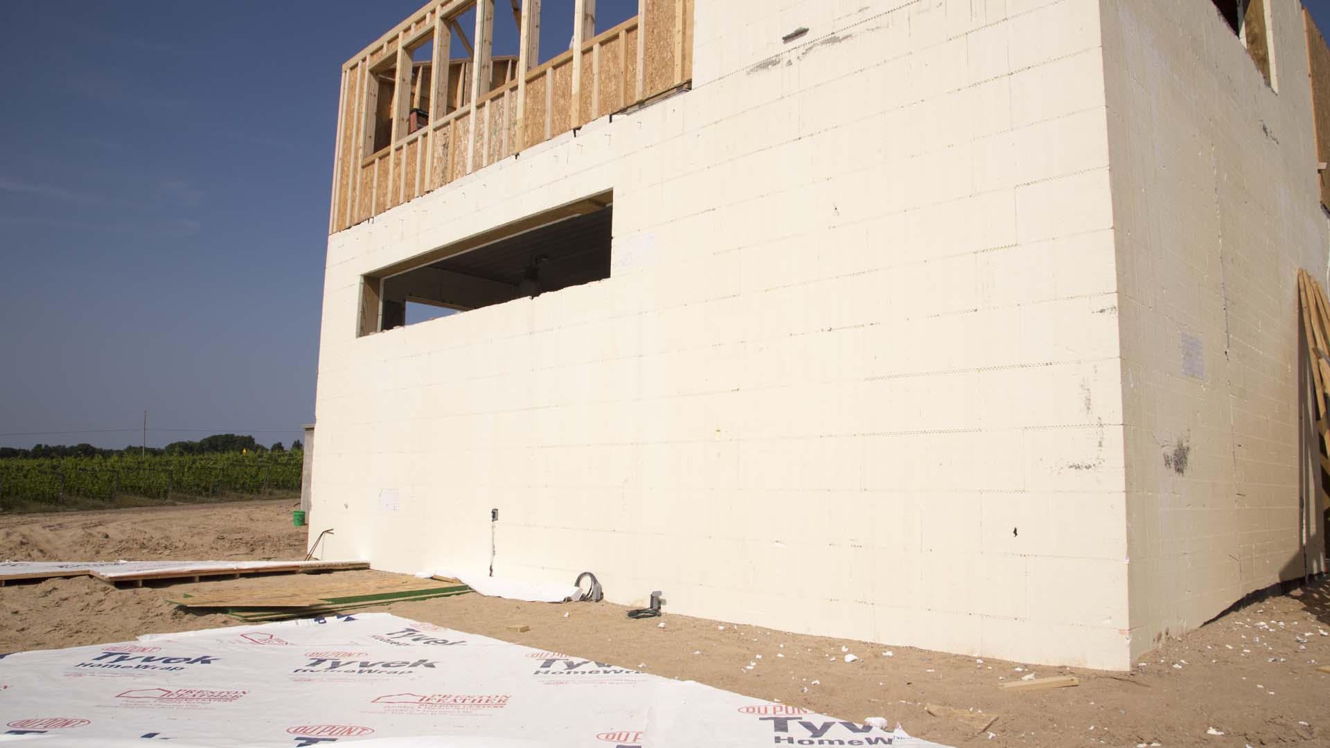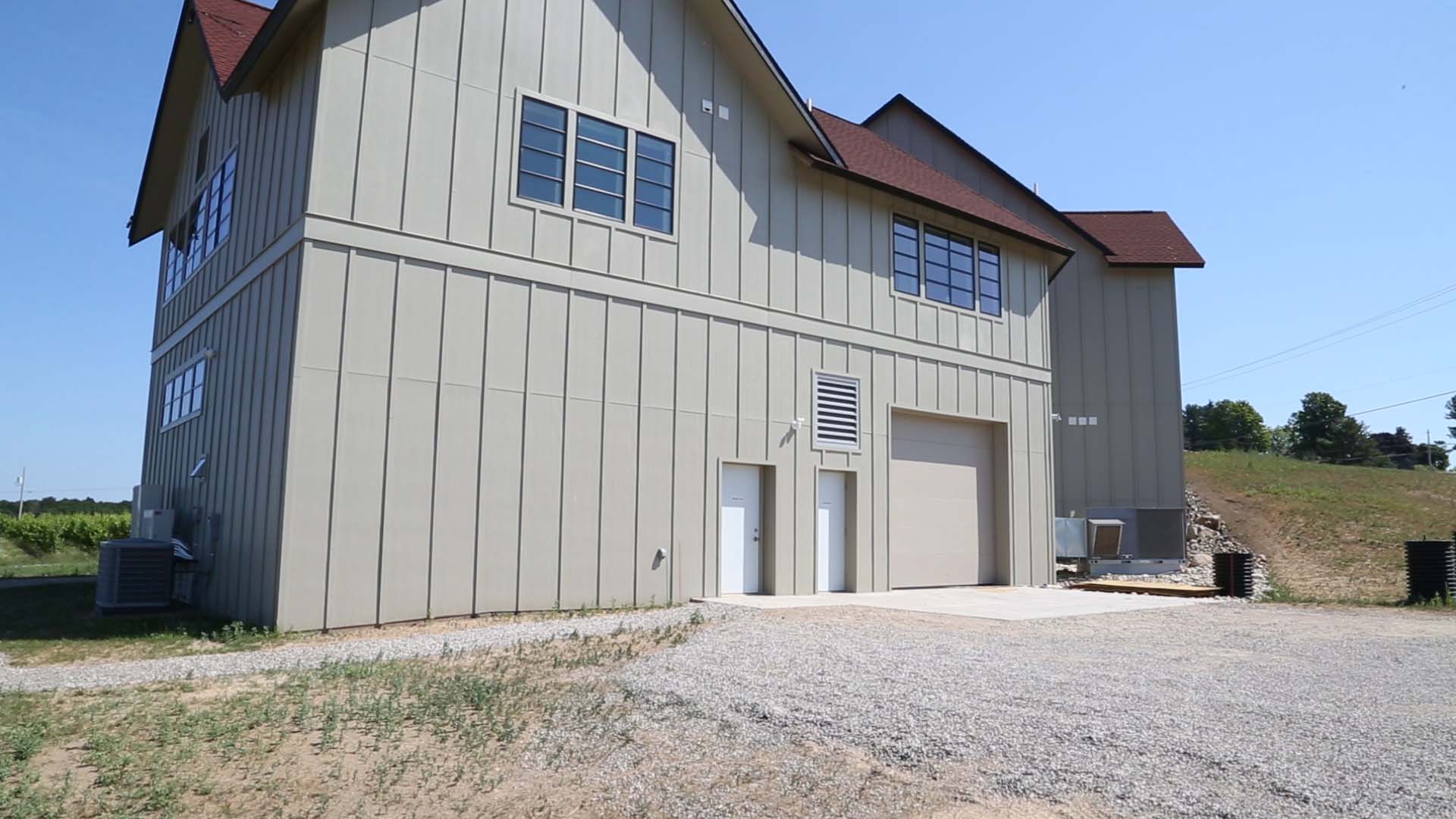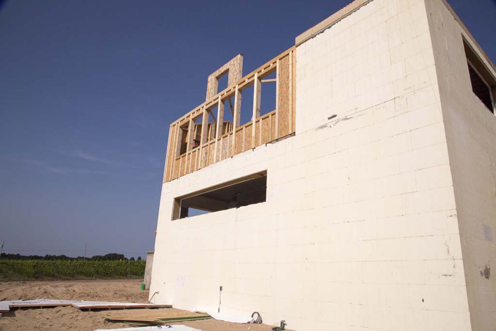Some wineries have a production facility that is separate from the tasting room and public side of the winery. Bonobo brings both together with an event center and small restaurant. To do this, the structure needed to be cost-effective and energy efficient. The most important room in the winery is the barrel room. The barrel room and production facility are the major reasons they chose to build ICF. The barrel room is a 2,000 square foot room on the lower level in the south-west section of the winery. The long outside wall in this room faces west and really gets pounded in the summer from the sun, and also from the fierce wind off Lake Michigan in the winter.