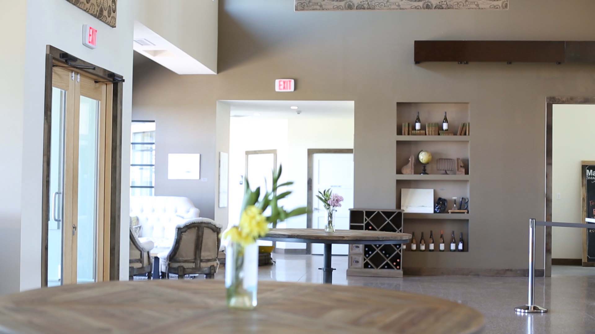 The overall look of the winery is quite impressive with an open floor plan, comfortable surroundings with a large viewing deck constructed to get the perfect view of the vineyard, cherry trees and the lake. The lower level is clean and bright. The barrel room is tastefully decorated and one of the largest open spaces in the facility.