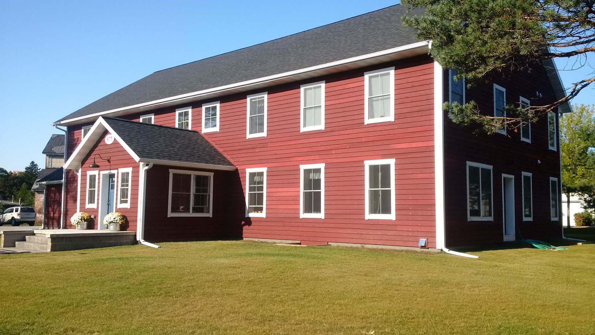 After the red siding was installed the bright red color makes Nestledown B&B a beacon to travelers passing by. Residents and guests are constantly amazed how quiet and comfortable it is inside. The more buildings that are built, the more the public learns. The B&B impacts more than just a residential home, it gets many visitors each month and the construction method is a topic of conversation.