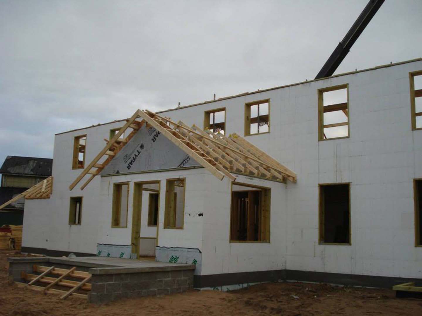 As a bed and breakfast, comfort and quiet were overarching concerns during design and construction. Nestledown Bed & Breakfast (www.nestledownmarquette.com) consists of the main building, an attached garage with small apartment above and storage shed. The owners, architect, and designers took their inspiration from a colonial style with strong Scandinavian influences. This building would feel right at home in Sweden or Norway. Nestledown is located along the main drive in Marquette, Michigan and many cars and trucks pass along day and night. ICFs were chosen for the sound and noise attenuation.