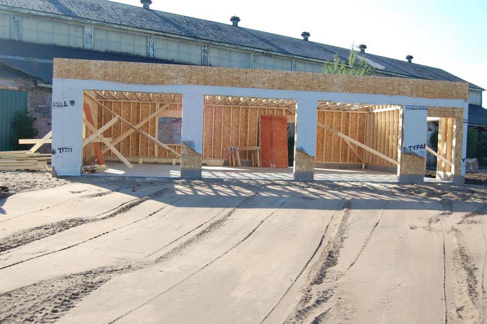 With the property purchased and plans approved by the State of Michigan Department of Environmental Quality, it was time to begin preparing the site. On the existing site was a condemned 100’x34’ three-story pattern building that needed to be demolished. The owners began that process reclaiming what materials they could. In the end, the timbers that frame the hearth are from the main posts of the pattern building.