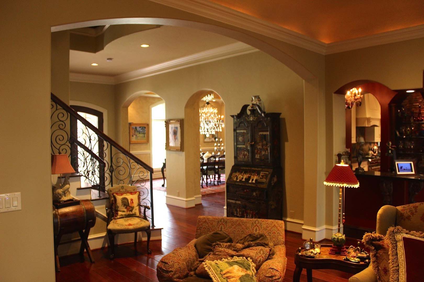This home may have all of the technology but is still a comfortable, safe, efficient and healthy home. With architectural elements such as an elegant staircase, arched doorways, vaulted ceilings and an inviting exterior of stucco brick and stone material, visitors would never know of all of the smart technology it contains.