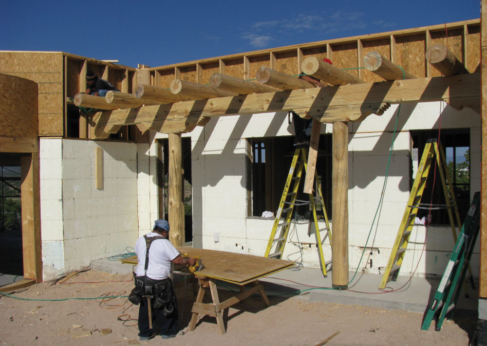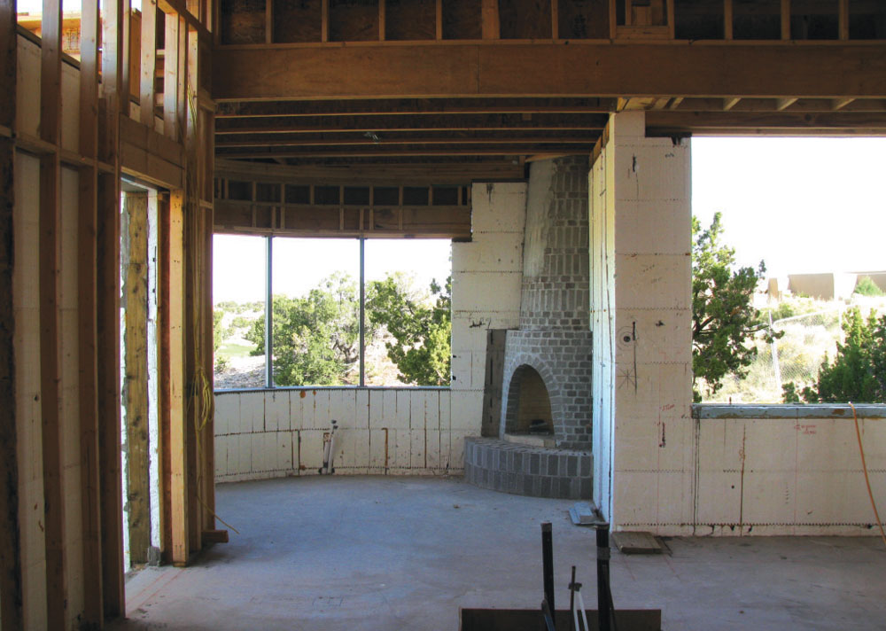 ICFs lent themselves nicely to the Santa Fe style facade. The heavier walls also made attachment and support of large timbers much easier to deal with. ICF made easy construction of radius walls. The construction and energy benefits essentially excluded any other system from being viable.Interior walls were plastered and the exterior is stucco. The ICF walls did slightly increase the budget, but the homeowner embraced the long term benefits of using ICFs. The builders appreciated the ease associated with constructing ICF walls.