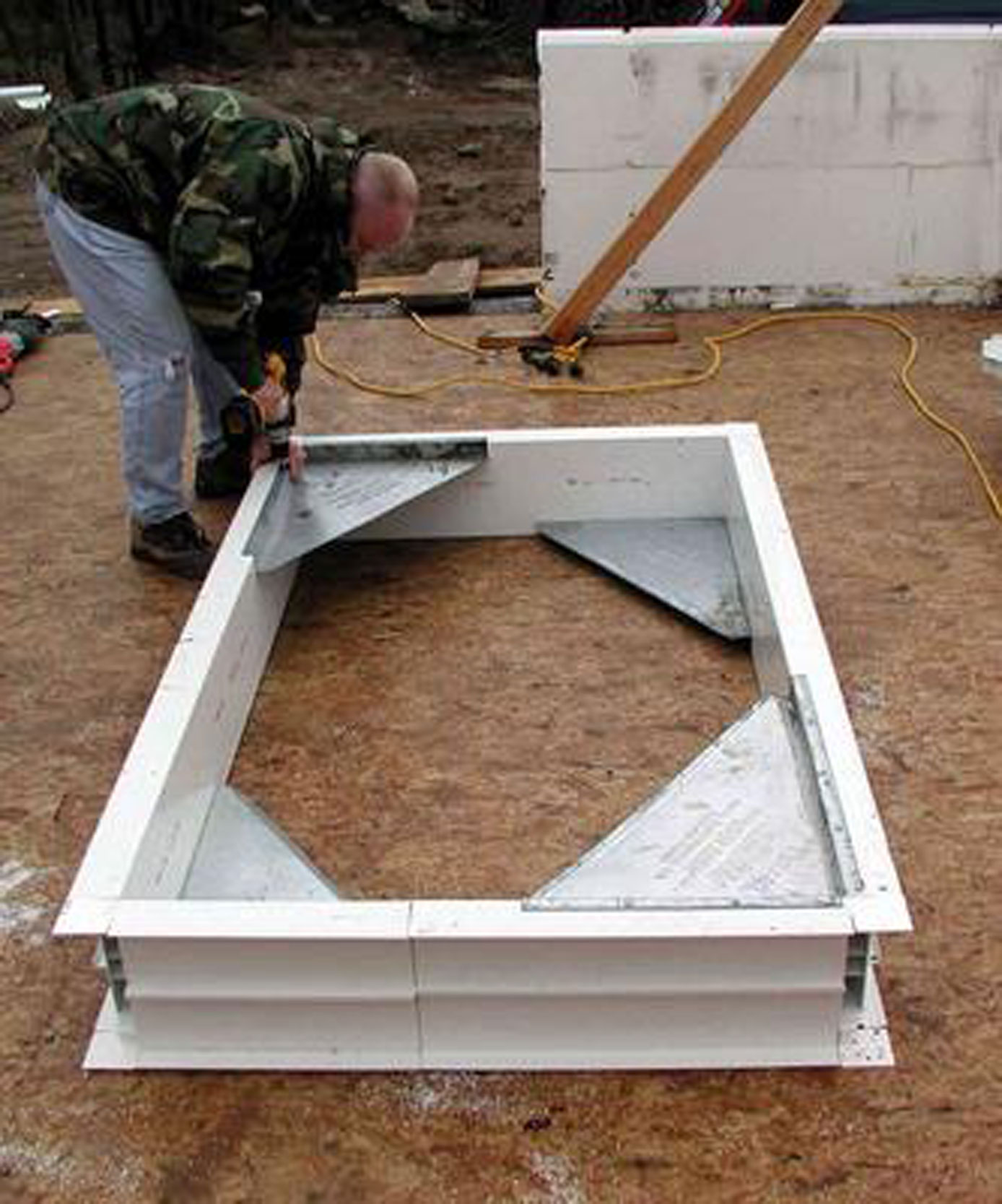 When building with ICFs, it is necessary to “buck” all rough opening. This keeps the concrete from flowing out of the walls when they are poured and provides attachment points for your future door or window. There are several types of materials that can be used as bucking. The most common are wood, vinyl, pressure treated lumber, and ICF foam bucking.