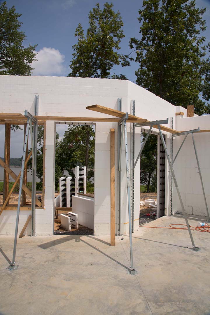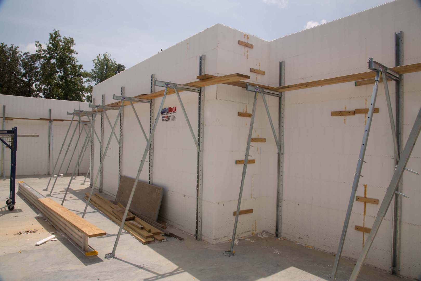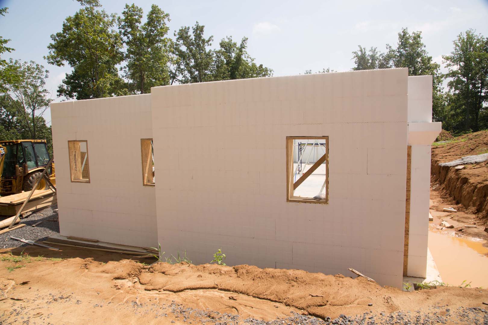 The ICF portion of this house went up relatively quickly given the fact that it was the builders first time working with ICFs. You can see from the construction photos that Mr. Griffin kept and extremely clean and organized job-site. The walls were stacked and braced very efficiently. The result is walls that are incredibly straight and several large openings that are perfectly straight and plumb. The walls are solid through and through with no voids present. The home is airtight and maximizes all of the benefits of ICF construction.