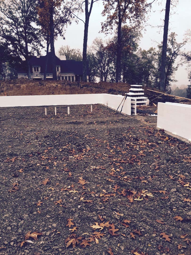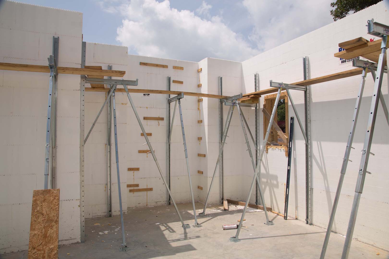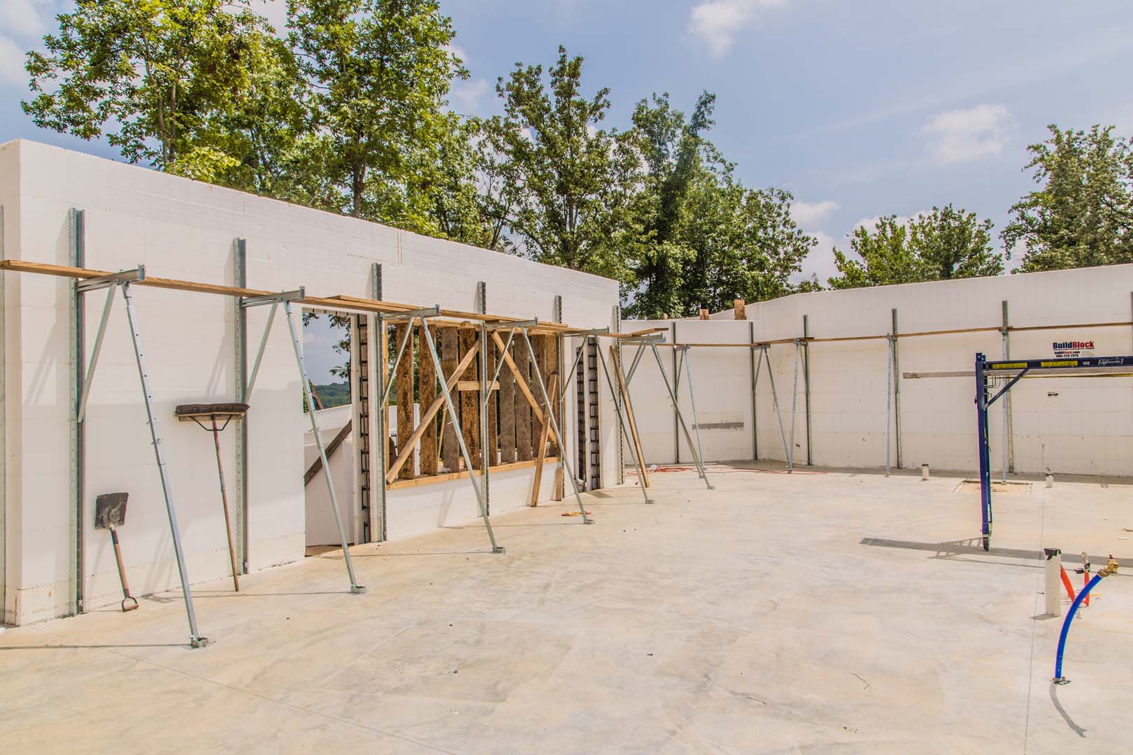 The ICF portion of this house went up relatively quickly given the fact that it was the builders first time working with ICFs. You can see from the construction photos that Mr. Griffin kept and extremely clean and organized job-site. The walls were stacked and braced very efficiently. The result is walls that are incredibly straight and several large openings that are perfectly straight and plumb. The walls are solid through and through with no voids present. The home is airtight and maximizes all of the benefits of ICF construction.