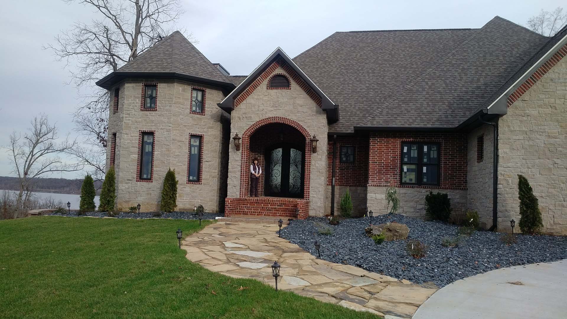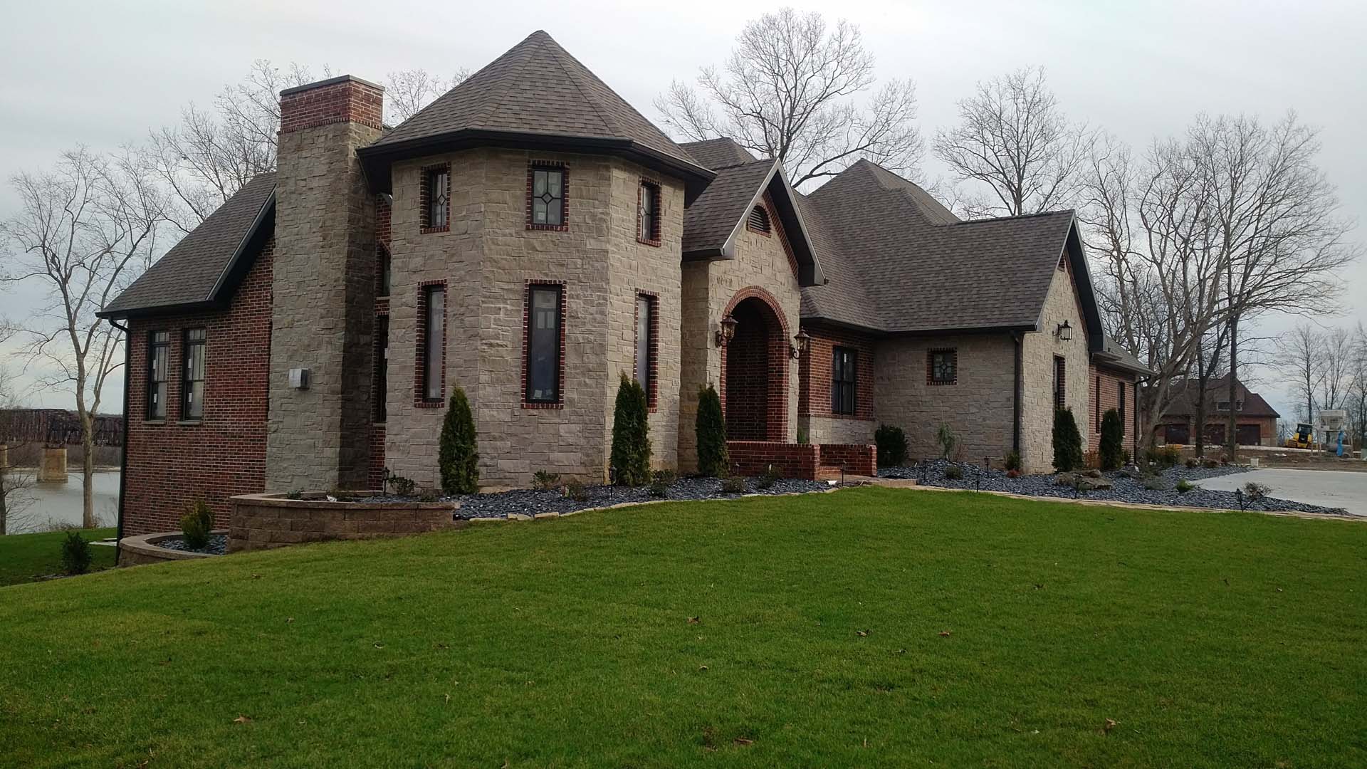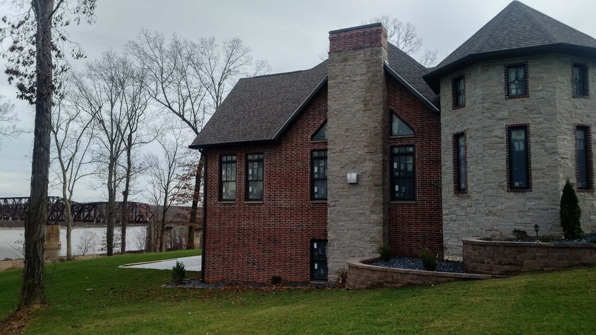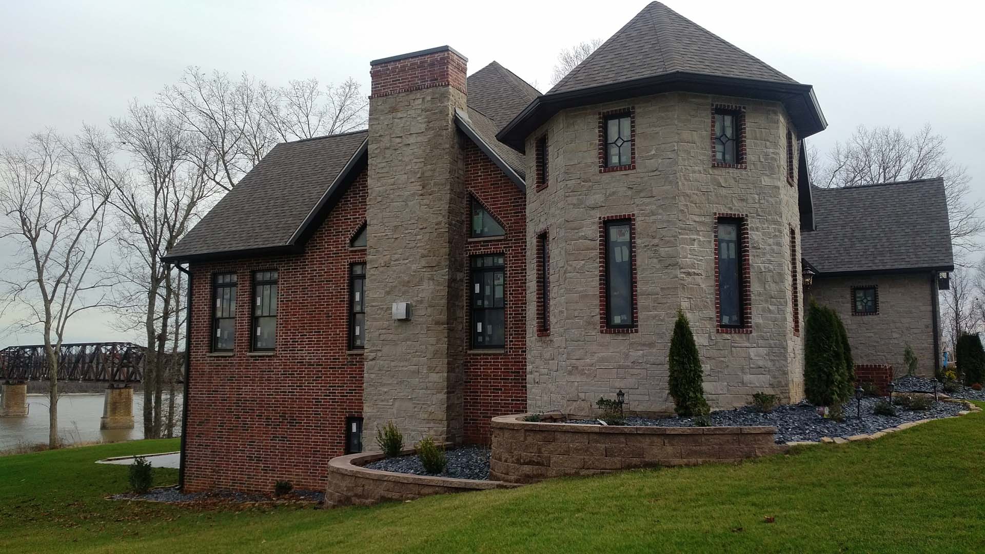 inside of the home has many large openings giving the interior an open feel. The back of the house, which offers views of the river is thoughtfully completed with several windows, a walkout deck, and large patio. The turret, vaulted ceilings, and arched doorways give the house a castle feel and make it seem even larger than it is. The two different tones of brick on the outside of the home work to break up the design and give the house an amazing amount of curb (and river) appeal.