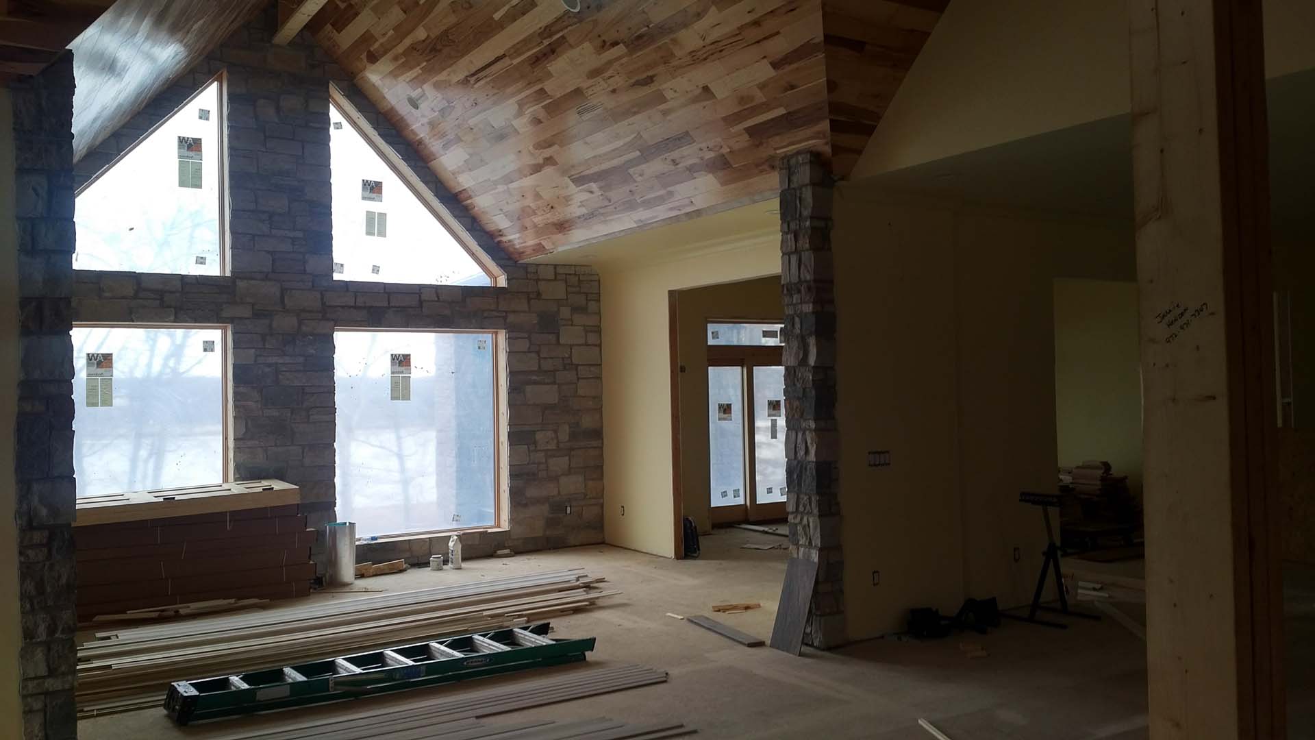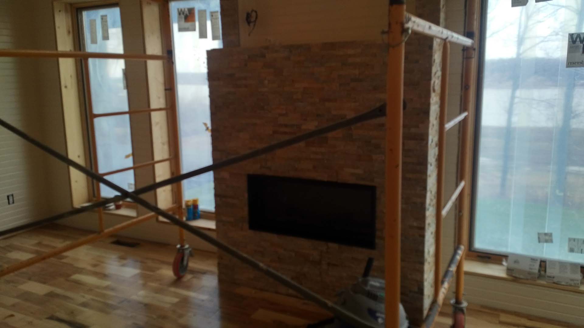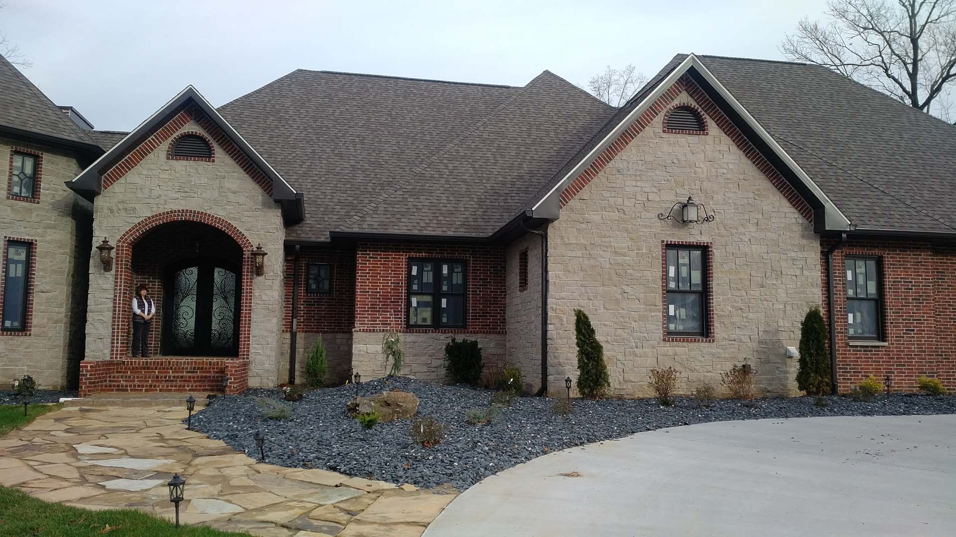 - Project utilizes BuildBrace, wood bucking, wood pre-fab floor joists, Tamko TW60 waterproofing, and a brick and stone exterior